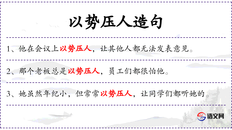 • 以势压人:动词短语,意为利用自己的权力或地位压制他人。