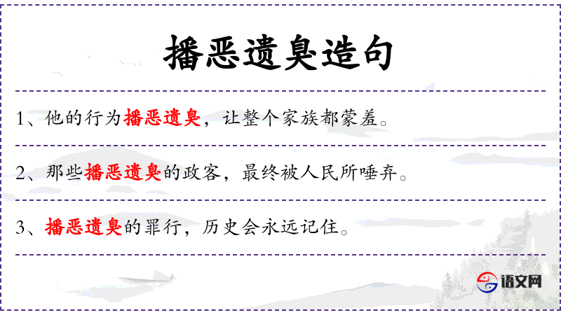 - 播恶遗臭:形容词短语,意为散布恶劣、令人厌恶的信息,留下不好的影响。