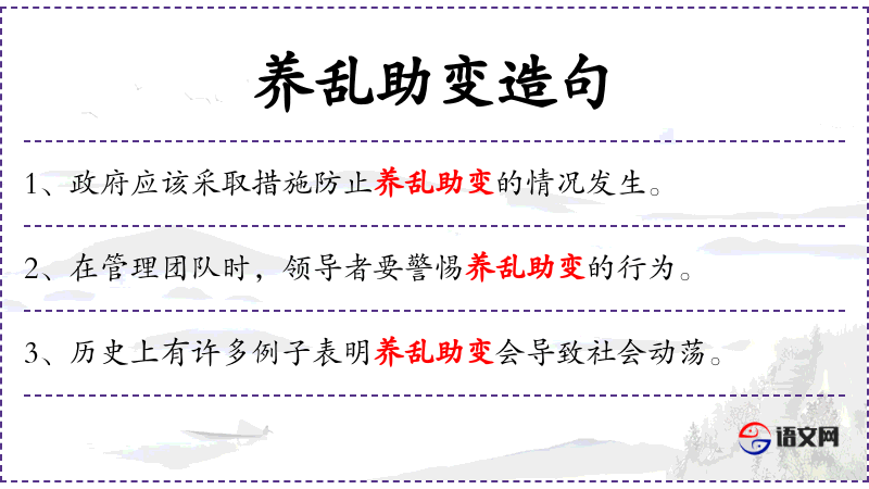 - 养乱助变:可能指培养混乱或促进变化,特别是指那些不被认为是积极或有益的变化。