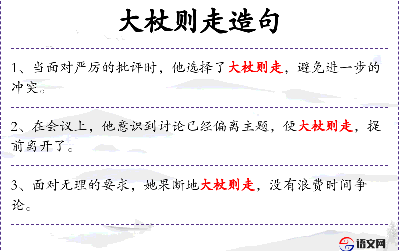 - 大杖则走:成语,意为遇到强硬手段时选择回避。