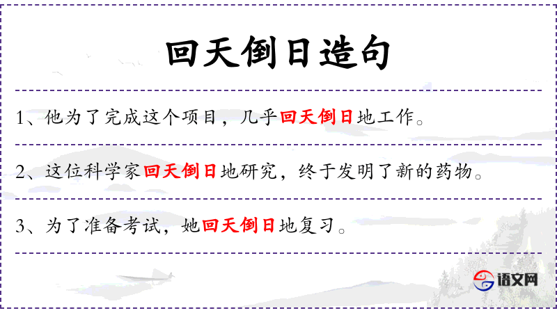 - 回天倒日:夜以继日、废寝忘食