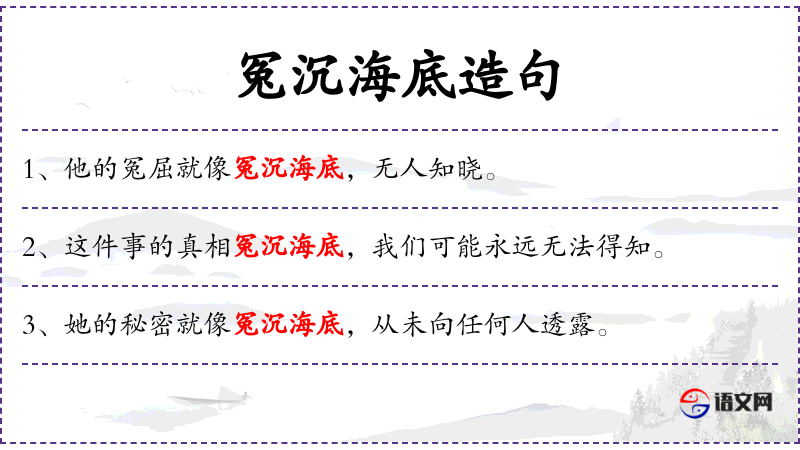 - “冤沉海底”这个成语的使用,增强了句子表达的情感深度,暗示了一种不公和无奈。
