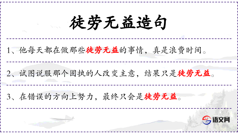 1. 【徒劳无益】 白费劲,没有一点用处。