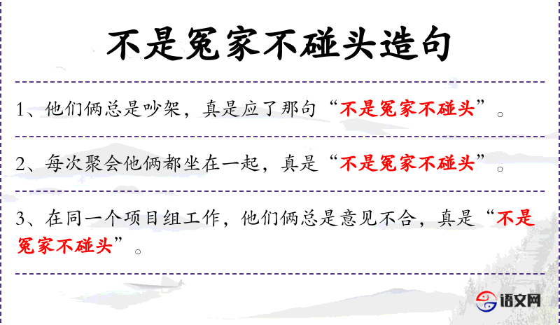 “不是冤家不碰头”是一个成语,源自民间故事,反映了人对于人际关系的理解。这个成语强调了人与人之间的特殊关系和缘分。