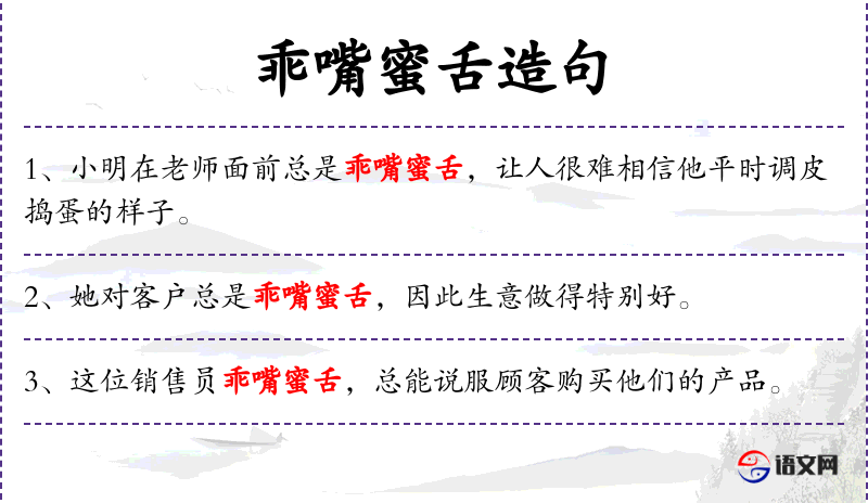 在实际交流中,“乖嘴蜜舌”可能被用于描述某人在社交场合中的表现,尤其是在需要给人留下好印象的场合。这种表达方式可能带有一定的隐含意义,暗示说话者可能过于讨好或不够真诚。