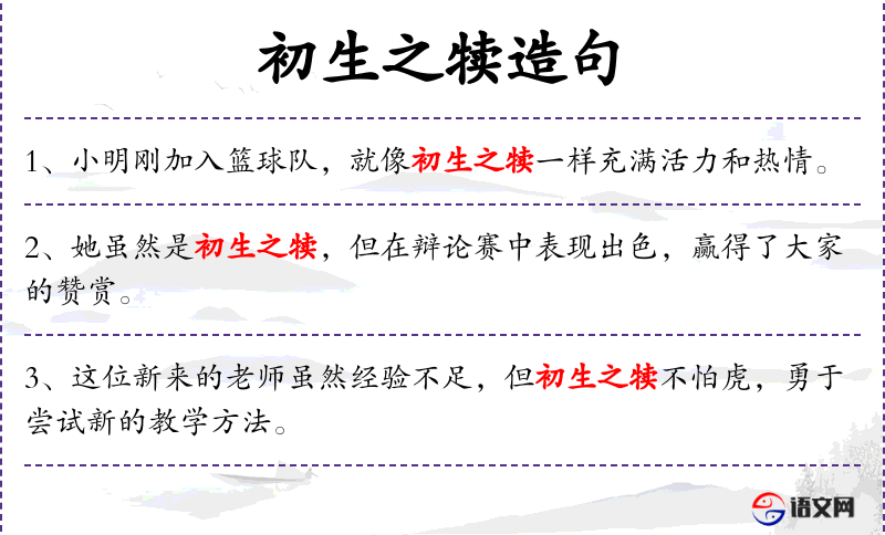 句子:“在艺术创作上,他初生之犊的创造力让人眼前一亮。”