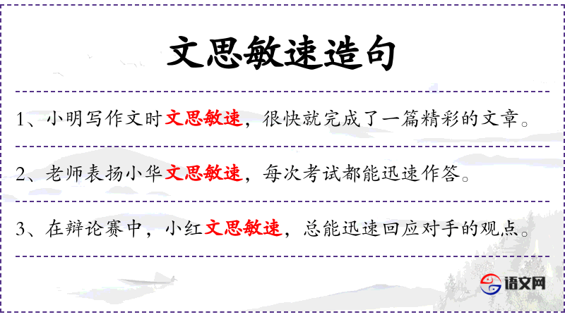5. 【文思敏速】 形容写文章的思路迅速而灵敏。