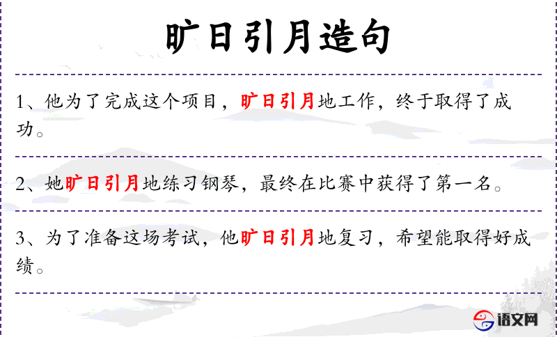 - 旷日引月:这个成语源自**古代,形容时间非常长,常用于描述长时间的等待或努力。