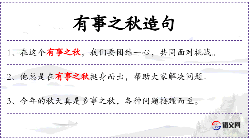 7. 【有事之秋】 指战争或多事故的年头。