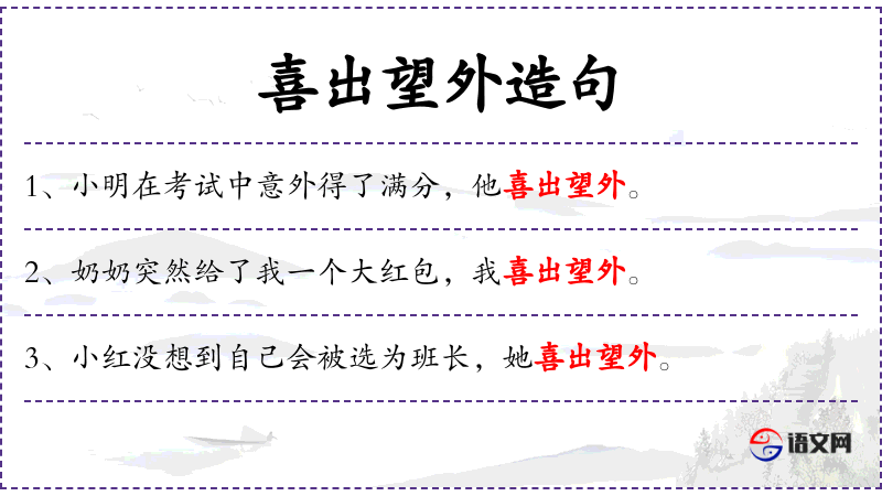 3. 【喜出望外】 望:希望,意料。由于没有想到的好事而非常高兴。