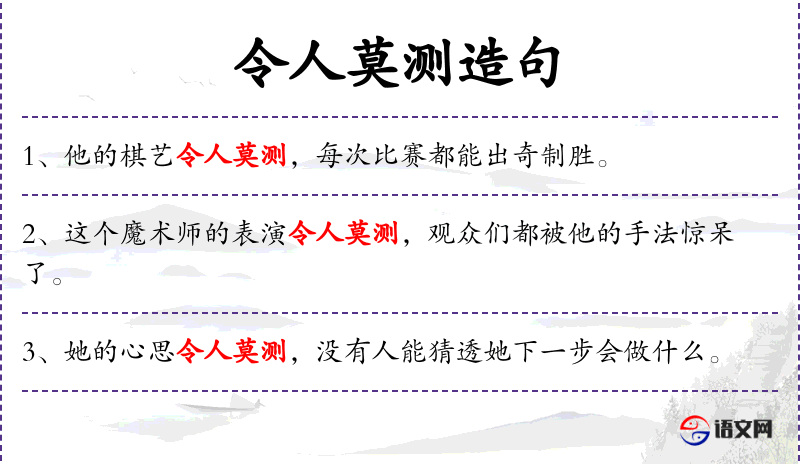 - 成语“令人莫测”在这里强调了魔术的神秘性。