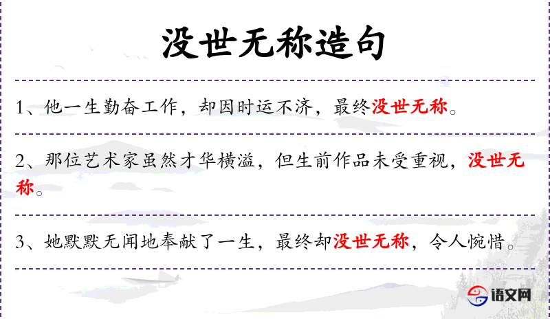 1. 【没世无称】 - 死后名声不能为人所颂扬。指死后没有名声,不为人所知。亦作“没世无闻”。