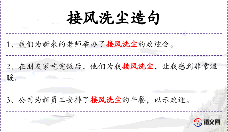 - 接风洗尘:一种欢迎远道而来的客人的传统*俗,表示欢迎和尊敬。