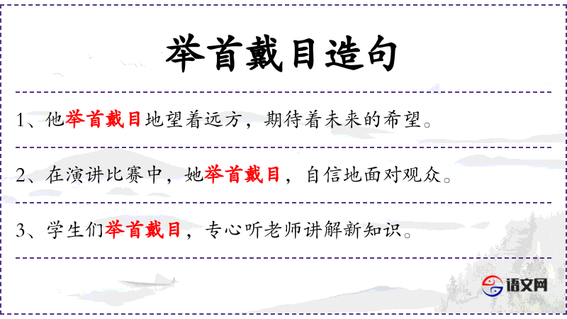 句子:“学生们举首戴目,专心听老师讲解新知识。”