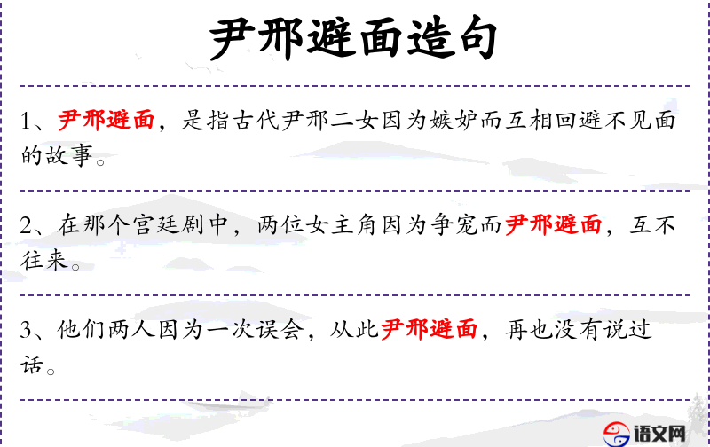 - 尹邢避面:成语,意为避免见面,源自古代故事。