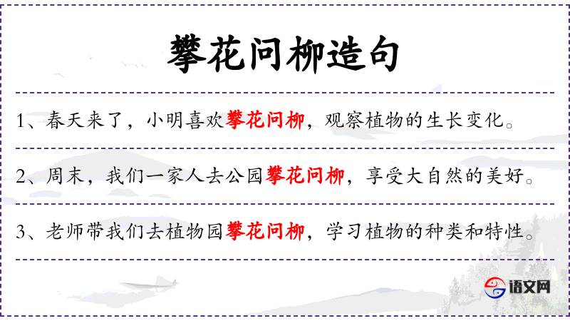 “攀花问柳”这个表达在文化中有着悠久的传统,常用来形容人们在春天或户外活动中欣赏自然美景的行为。这个句子反映了人对自然和谐共处的价值观。
