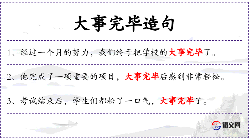 - 大事完毕后:时间状语,表示一个重要**完成后。