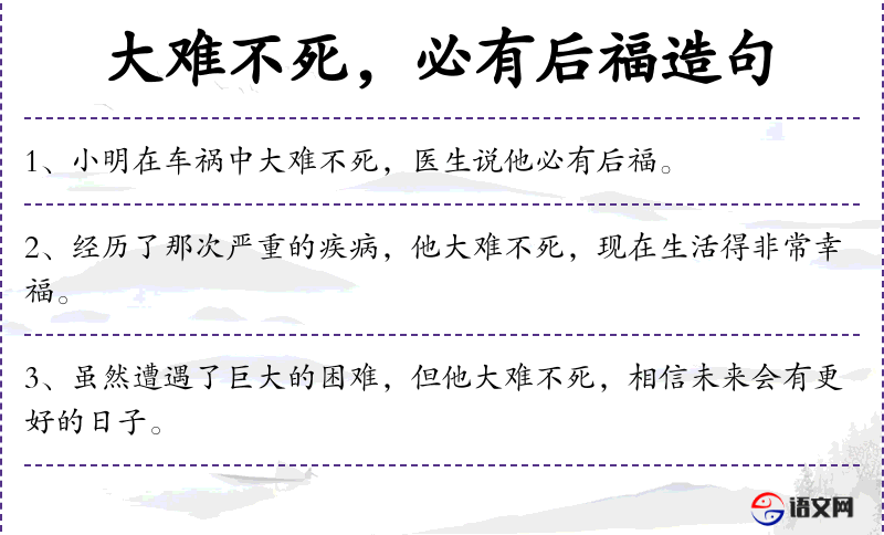- 大难不死:这个成语在**文化中常用来形容人在经历极大危险后幸存,通常带有强烈的幸运和希望的意味。