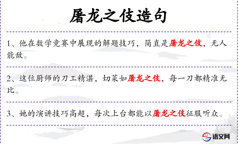 - 文化背景:“屠龙之伎”源自欧洲中世纪的骑士传说,比喻高超的技艺。
