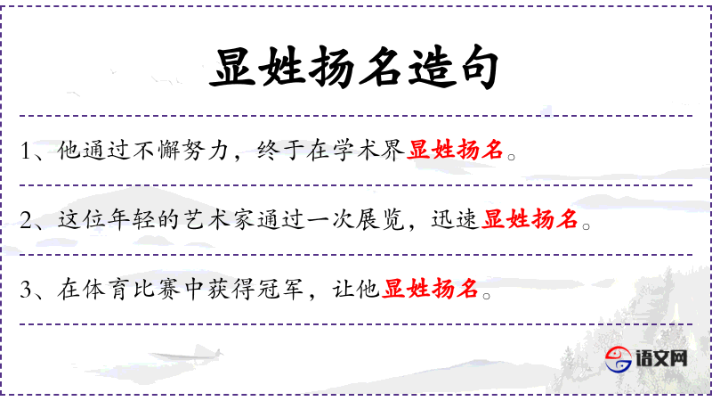 3. 【显姓扬名】 - 指显耀门第,传扬名声。