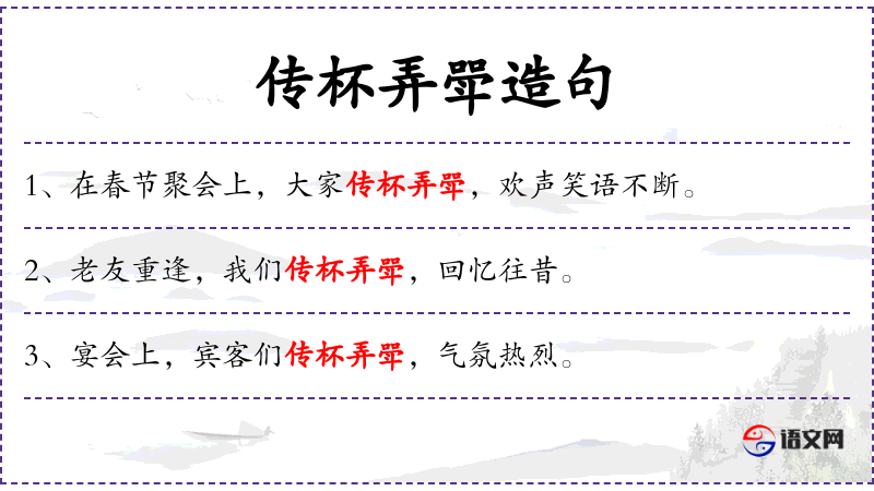 谓语:传杯弄斝,共同庆祝