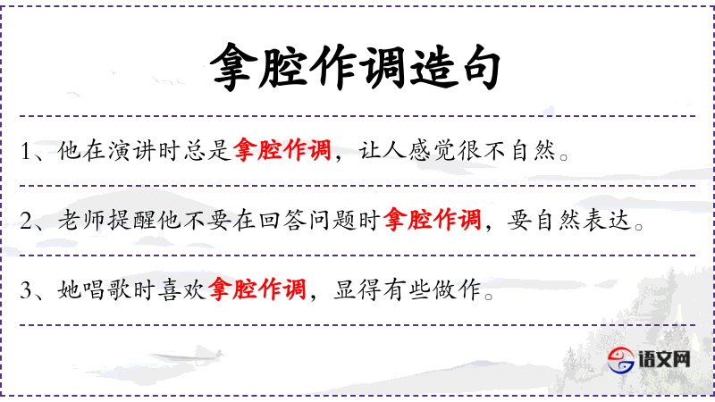 - 可以改写为:“老师建议他在回答问题时保持自然,避免拿腔作调。”
