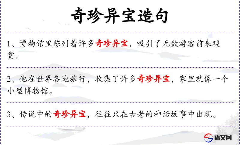 - 奇珍异宝:指非常珍贵和稀有的物品