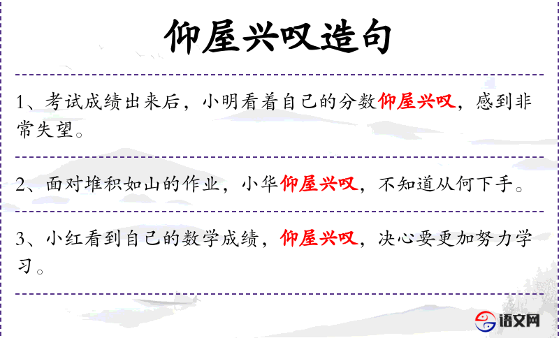 - 成语典故:“仰屋兴叹”源自古代文学,用以形容人在困境中的无奈叹息。