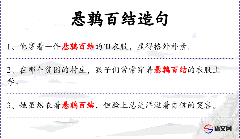 句子:“在寒冷的冬天,他依然穿着那件悬鹑百结的棉袄。”