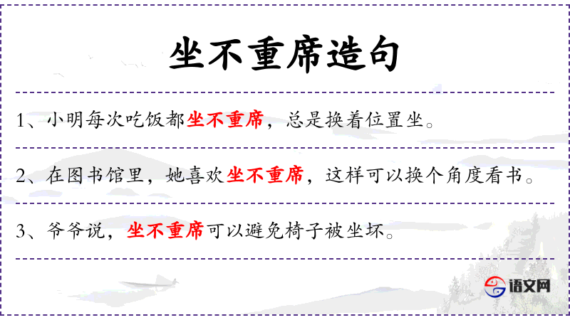 句子:“坐不重席的*惯让我们的家庭聚餐更加温馨。”