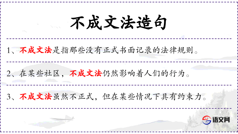 1. 【不成文法】 - 不经立法程序而由国家承认并赋予法律效力的社会习惯、判决中的法律原则等(跟“成文法”相对)。