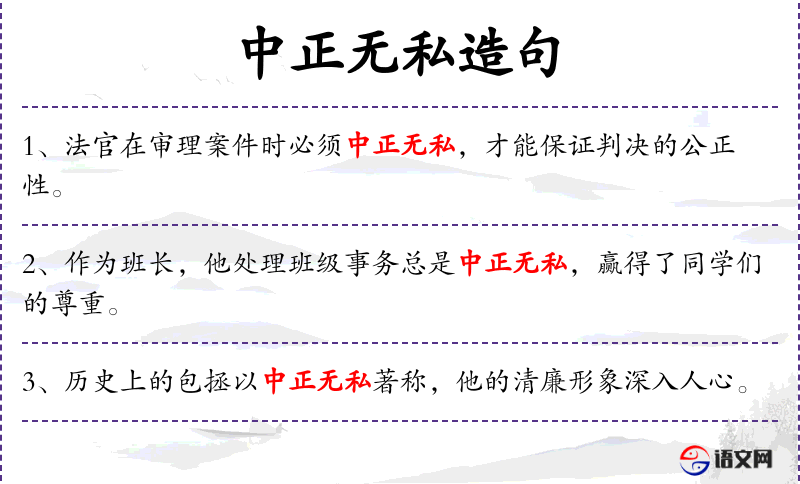 - 中正无私:公正无私,不偏不倚。