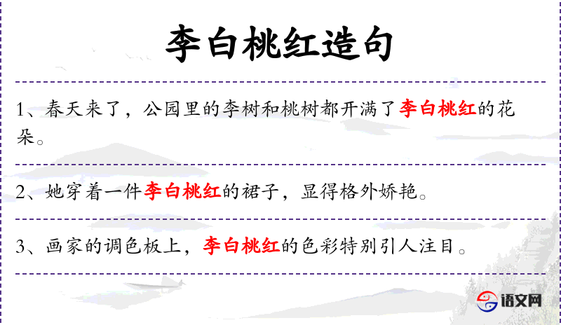4. 【李白桃红】 - 桃花红,李花白。指春天美好宜人的景色。
