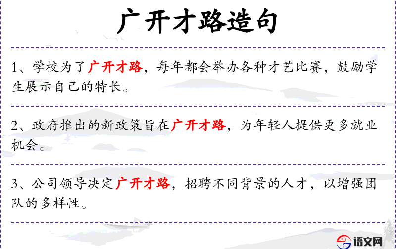 - “广开才路”是一个成语,源自**传统文化,强调开放和包容。