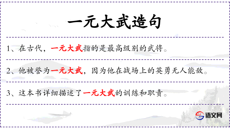 “一元大武”可能是一个源自**古代的称号,用于表彰在军事上有卓越贡献的人物。了解这一称号的历史背景和文化意义有助于更深入地理解句子的含义。