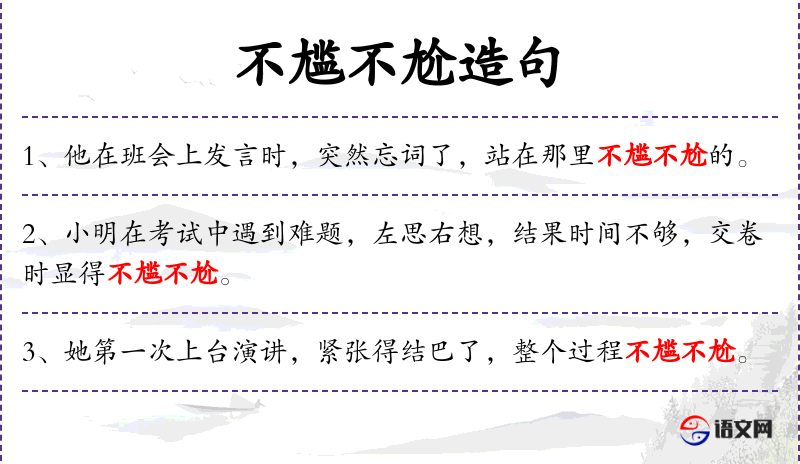- 状语:在全班面前、因为没准备好、显得不尴不尬