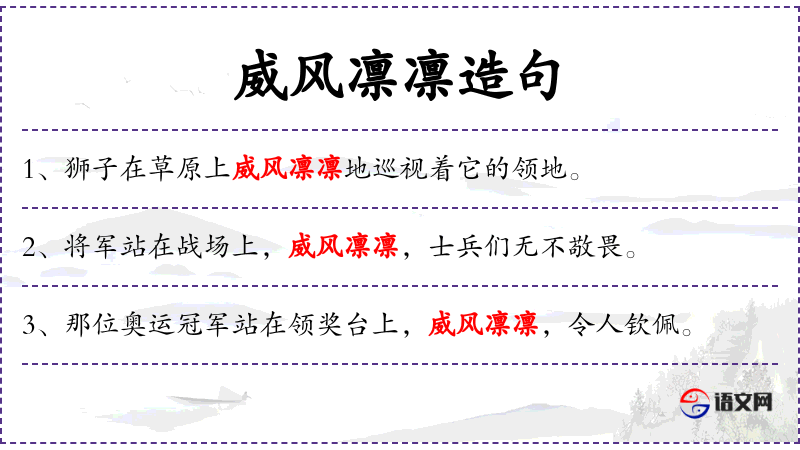 - 威风凛凛:形容词短语,形容人显得非常威严和有气势。 *. 令人钦佩:动词短语,表示让人感到尊敬和赞赏。