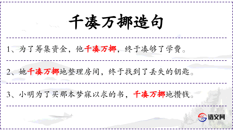 - 文化意义:“千凑万挪”体现了**文化中对于勤奋和坚持的重视。