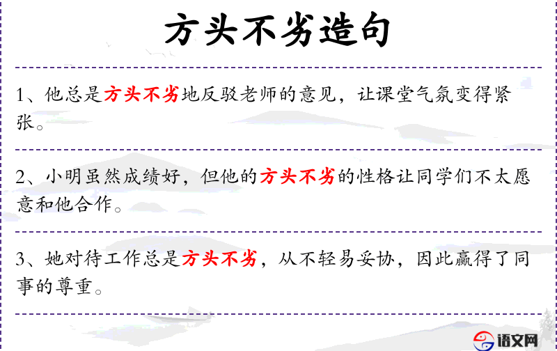 - 成语:方头不劣地,源自**传统文化,形容人固执己见。
