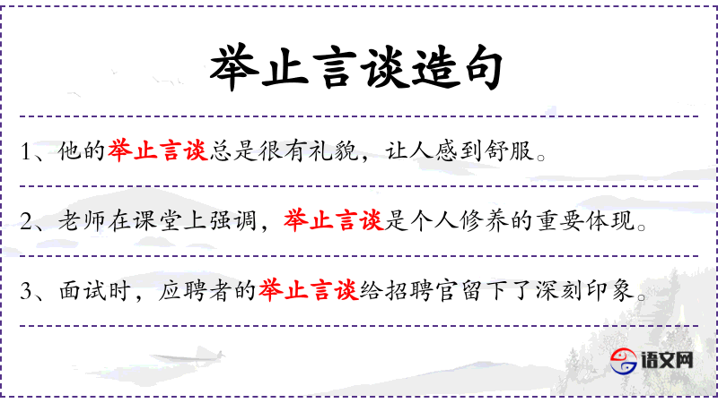 - 举止言谈得体:指一个人的行为和言语都符合社会规范和礼仪,不越界,不冒犯他人。