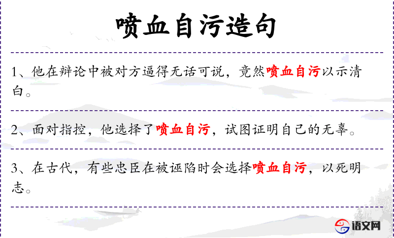 - 喷血自污:通过喷血来玷污自己,通常是为了表明清白或抗议。