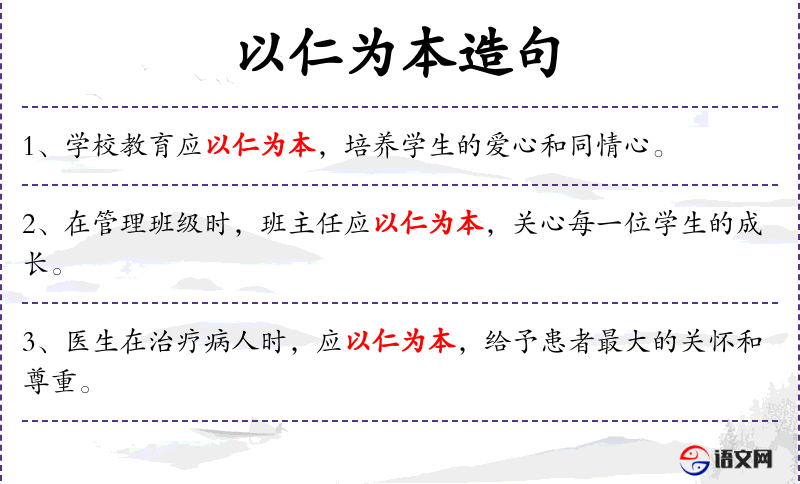 1. 【以仁为本】 仁:仁爱;本:根本。以仁爱为治理国家的根本。