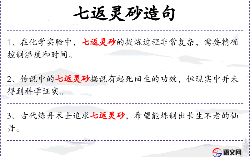 句子:“古代炼丹术士追求七返灵砂,希望能炼制出长生不老的仙丹。”