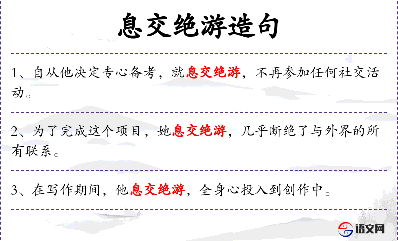 - 文化意义:在**文化中,“息交绝游”强调了个人为了追求目标而牺牲社交生活的决心。