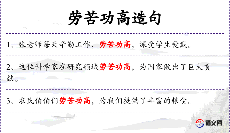 1. 【劳苦功高】 出了很多力,吃了很多苦,立下了很大的功劳。