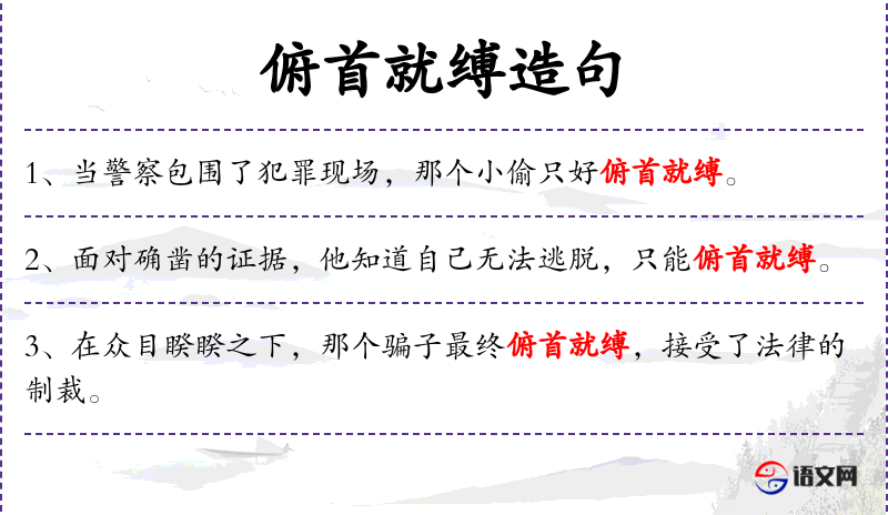句子:“那个贪污犯在听到判决后,无奈地俯首就缚,准备入狱服刑。”