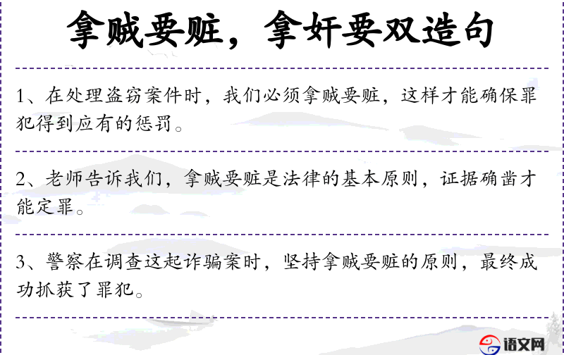 - 在法律实践中,拿贼要赃的原则确保了定罪的证据必须确凿。