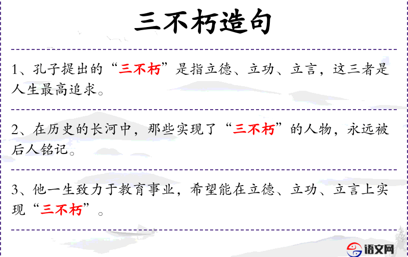 - 三不朽:指**传统文化中的“立德、立功、立言”,即道德、功业、言论三方面的永恒价值。