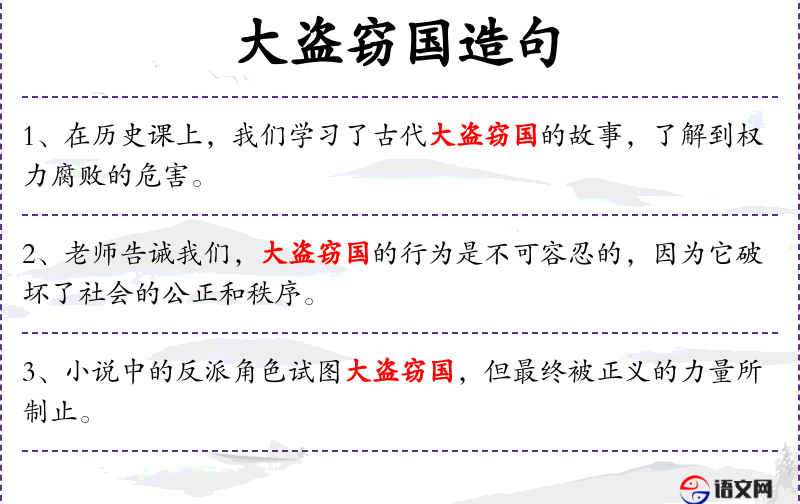- 在辩论赛中,一方运用大盗窃国的概念来批评某些政治行为。