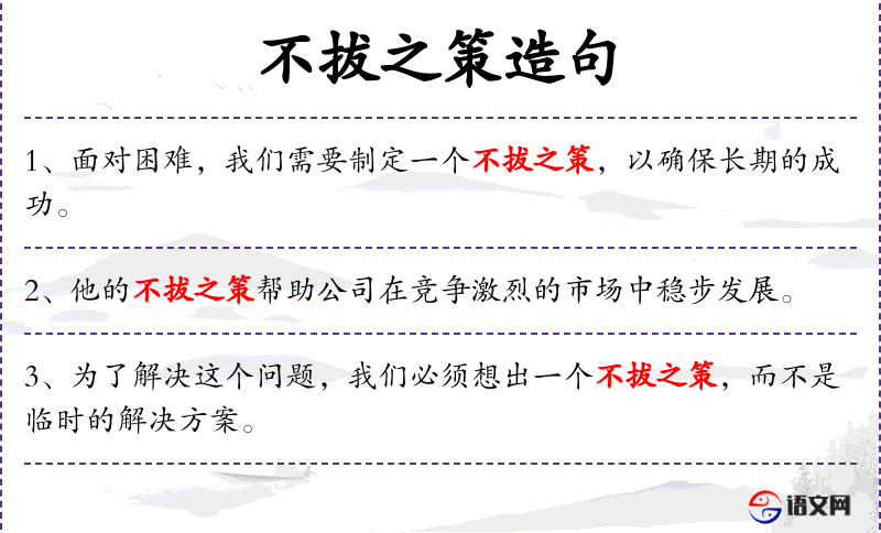 句子:“面对困难,我们需要制定一个不拔之策,以确保长期的成功。”